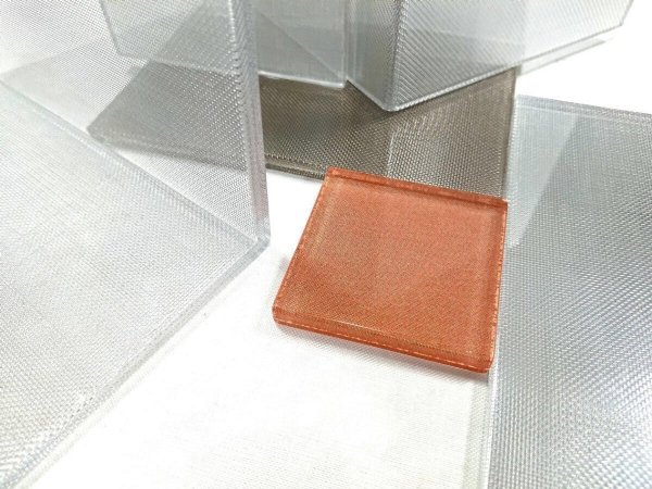 编织布纹图案。与超白或镜面玻璃复合夹胶可产生多种不同的美丽外观并兼具不同等级的隐私效果及不同等级的隔热效果。