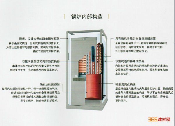 新型热交换器,世界性专利技术特殊眼观结合阻燃片,比以往产品和瞬间式锅炉提高效率2~3%,在保证高热效率的情况下可以更有效的控制排烟温度,地域适应性更强,低温地区可以有效避免冷凝水结冰现象;
