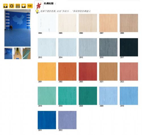 适用于医院, 办公场所, 超市和学校等场合, 易于维护保养, PUR表面处理, 具有防静电功能, 花色齐全。