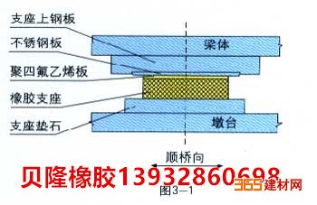 钢板与多层橡胶片硫化粘合而成一种普通橡胶支座产品,这种产品具有足够的竖向刚度,能够将支座上部构造的反力可靠的传递给墩台,支座具有良好的弹性,以应对桥梁的梁端的转动;又有较大的剪切变形能力,以满足上部构造的水平位移。