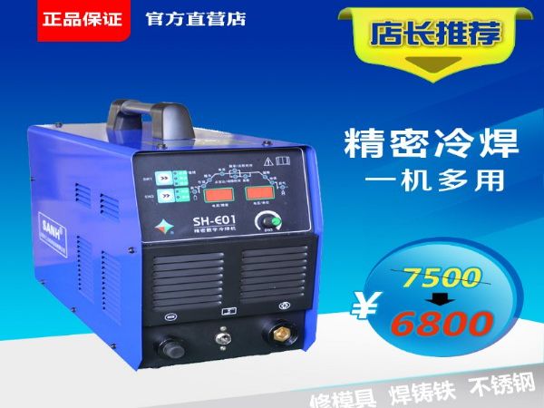不锈铁、铁板、冷板、铜板等)金属板材进行精密焊接。SH-EO1A冷焊机将*大焊接电流从原SH-E01的200A升级为300A,点焊时间从0.01秒调整为更短的0.001秒,使得点焊时间更短,发热量更低,焊接薄板时变形会更小,可对0.2mm~10mm板材进行精密焊接。两款冷焊机在模具修补、不锈钢焊接加工、铸钢产品缺陷修补等方面有非常好的效果,可对模具及铸钢产品的不同部位的凹陷、孔、洞、细缝、沟槽、棱角、棱线,尖峰部位、沙眼及普通氩弧焊机焊后周边产生的凹陷进行修补,发热小,不会造成基材退火变形。也可对经放电加工、渗氮及软氮化处理后的模具进行修补。