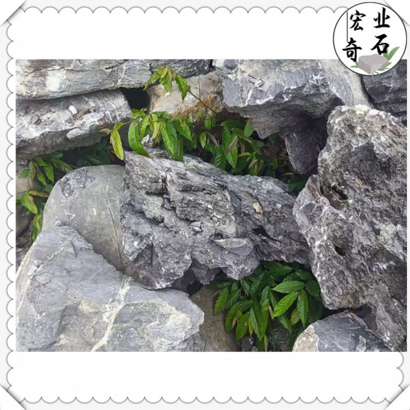 英石种类多,其种类分为阳石和阴石两大类。阳石露在地面,长期风化,质地坚硬,色泽青苍,形体瘦削,扣之声脆,分为直纹石、横纹石、大花石、小花石、叠石和雨点石,是瘦和皱的典型,适宜制作假山和盆景;阴石深埋地下,风化不足,质地松润,色泽青黛,有的间有白纹,形体漏透,造型雄奇,扣之声微,是漏和透的典型,适宜成景。