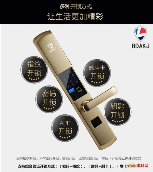 电子类型:指纹+密码(虚伪密码)+刷卡+钥匙+APP