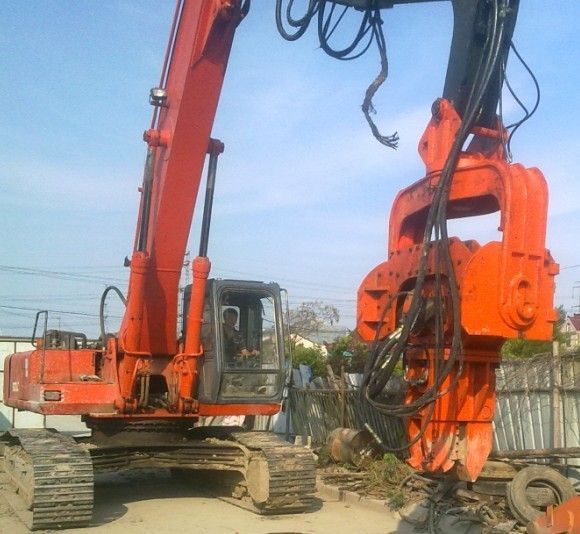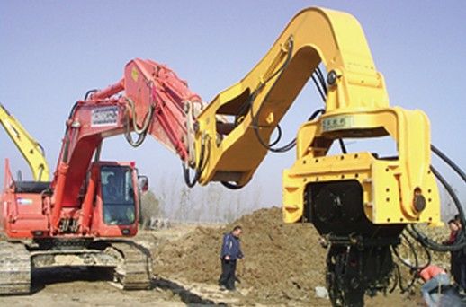 使用,有效利用挖掘机的液压动力及充分发挥挖掘机的机动性强, 操作灵活的特性使桩基工程施工迈向新阶段,大幅节约施工成本,提高工作效率 让您的挖掘机实现一机多用,提高投资效益。特别适用于市政、桥梁、铁路、湖泊围堰、建筑地基等中短桩工程,适用于打拔平板桩、