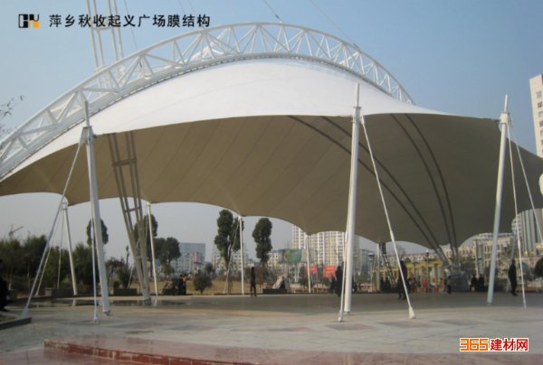 膜结构抵御天气变化的特性,膜屋面的一个重要作用就是抵御各种天气变化(如日晒、雨淋、风雪等)对其内部空间的影响,保持建筑物内部的舒适性。选择膜面的形态和材料时要考虑到所有可能的天气状况,并尽可能利用建筑本身等被动方法来减少能量的消耗。