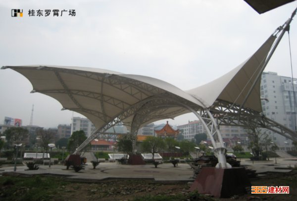 为了抵挡风雪,广场膜结构的膜面的外形应使排水通畅使捷,避免在其上形成水兜或雪的堆积。广场膜结构在施加预应力前的安装成形阶段,