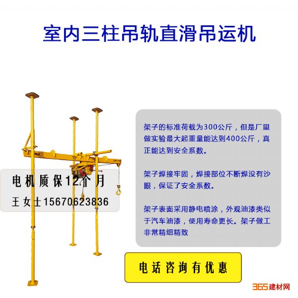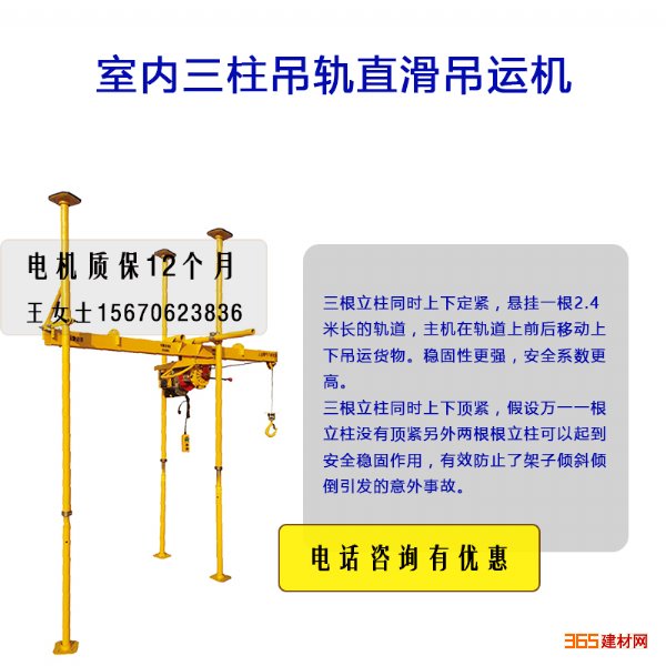 5.三柱吊轨直滑吊运机是在室内吊运机里面安全系数*高的一款机型。