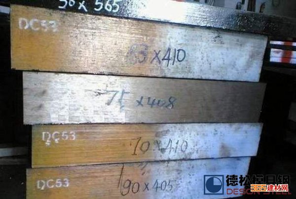 热处理硬度高於SKD11,高温520-530℃, 回火后可达62-63HRC高硬度,在强度和耐磨性方面日本大同DC53超过SKD11模具钢。韧性是SKD11模具钢的2倍,DC53的韧性在