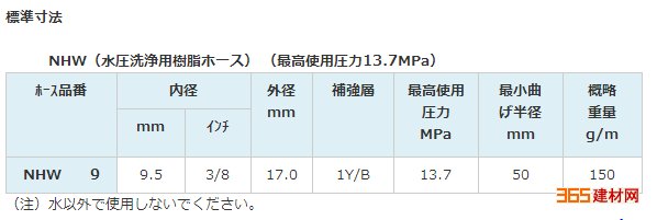 NHW(水压清洗用树脂软管)(*高使用压力13.7 MPa)