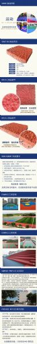 14、色彩:*高弹性EPDM和PU胶粒,表面颜色柔和,颗粒状表层,防止刺眼光线的反射,美观耐 久,并可 采用多色彩搭配。