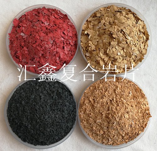复合岩片是花岗岩涂料(漆)生产厂商必备原料,真石漆生产厂商可根据天然花岗岩石材内颜色及颗粒大小来选择颜色、大小合适的复合岩片,按一定比例(根据天然花岗岩石材内各颜色颗粒含量)添加入天然真石漆中,经5-10分钟中速搅拌均匀,就能在真石漆的基础上生产出高档的花岗岩涂料(漆)。