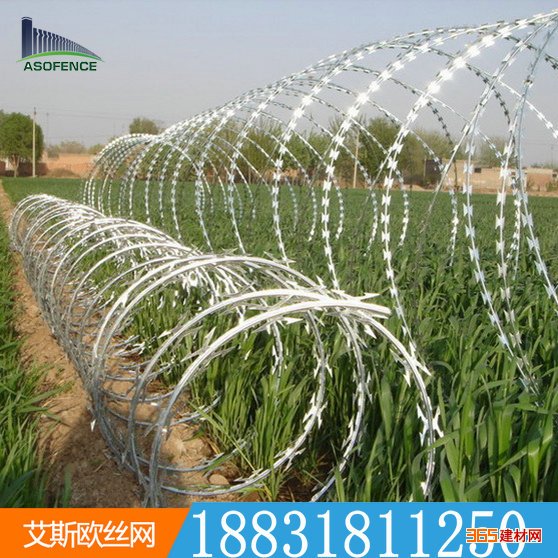 该产品铁路、公路、监狱、厂房等特殊地方,需要防护保护的地方,警示安全刀片刺绳。