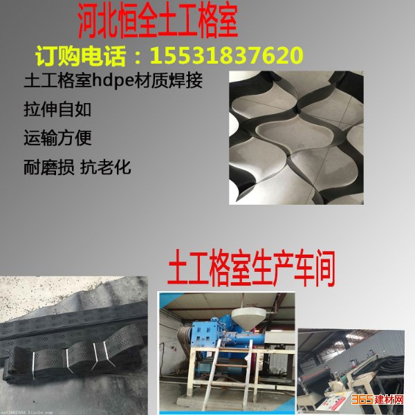 是由强化的hdpe片材料,经高强力焊接而形成的一种三维网状格室结构.一般经超声波针式焊接而成。因工程需要,有的在膜片上进行打孔。具有伸缩自如,运输可缩叠,施工时可张拉成网状,填入泥土、碎石、混凝土等松散物料,构成具有强大侧向限制和大刚度的结构体。
