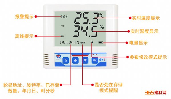 产品采用大屏液晶显示,具有温湿度上下限双控,限值自由设置,温度、湿度凭密码校准,网口数据传输等功能,内部集成报警功能模块(蜂鸣器或
