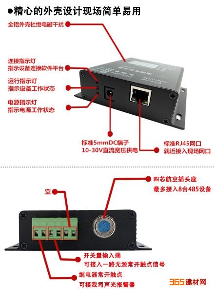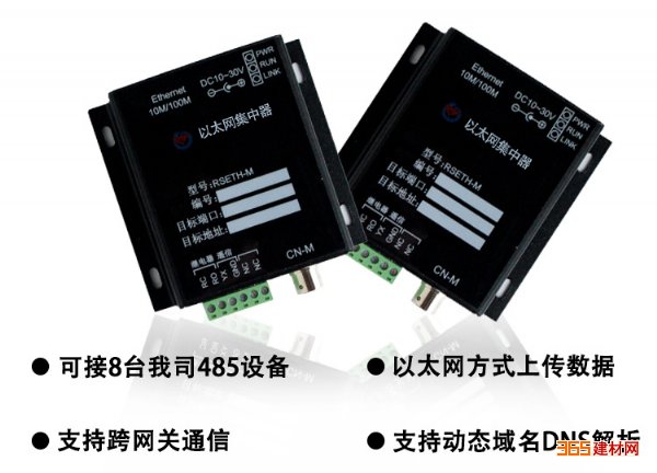 1. 通过以太网传输数据的集中器,可接入本公司所有类型的RS485型的