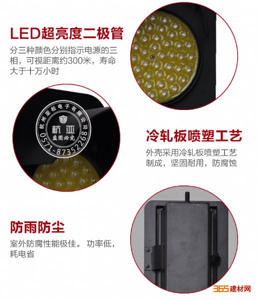 制成,分三种颜色( 黄、绿、红)分别指示电源的三相,可视距离约300米,寿命大于十万小时,优于其他同类产品。外壳采用电镀