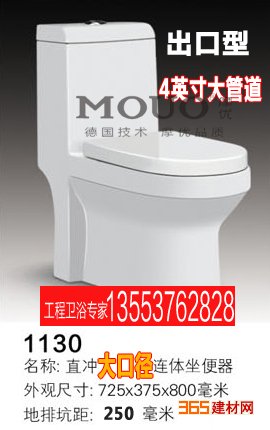 3、CSC/T 34.产品型号: MC132 产品名称: 联体座便器 整体尺寸: 700X400X660 排污口靠墙距离: 305/400 用水量: 4L/6L 其他说明: 双档排水:3L/6L