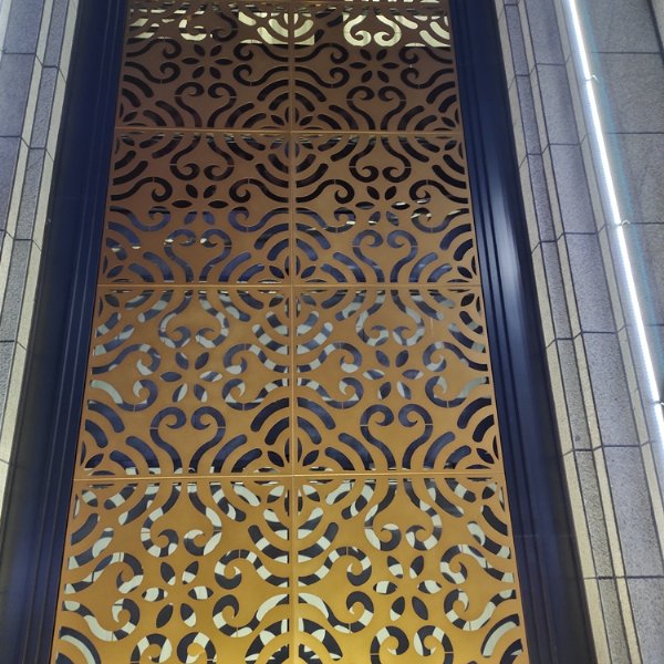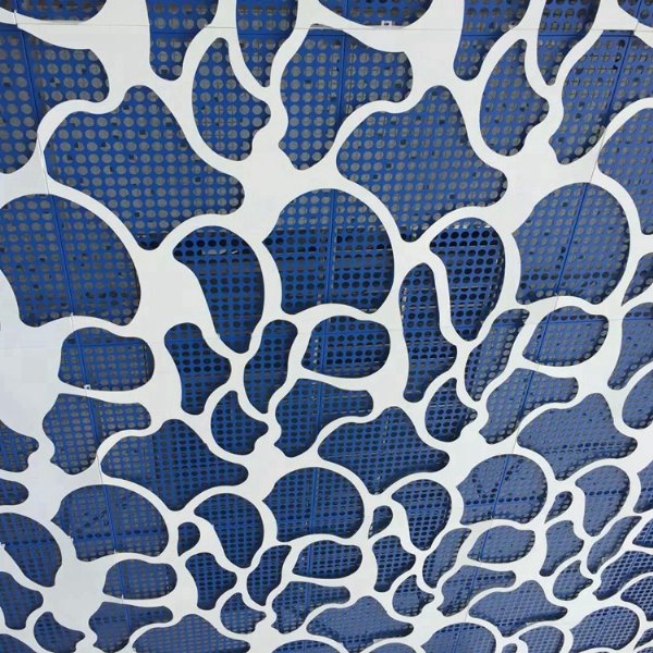 背景墙铝单板制作方式:按工程现场设计测量的尺寸、形状和构造形式进行数控折弯等技术成型,板材在加工后平整且不变形,然后在其表面进行雕花冲孔。铝单板的形状花式等都可以根据客户需求订做。