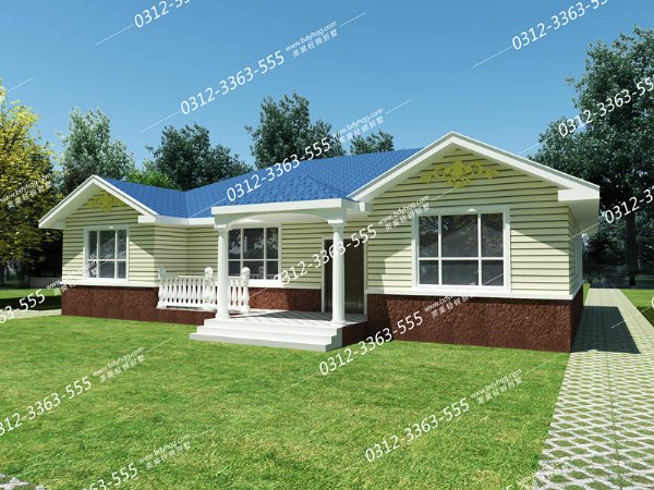 屋顶造型的设计简洁却不失美感,充分的展现出了对称性的美,蓝色的沥青瓦在阳光的照射下熠熠生辉;门厅顶子的造型也是颇具风格。