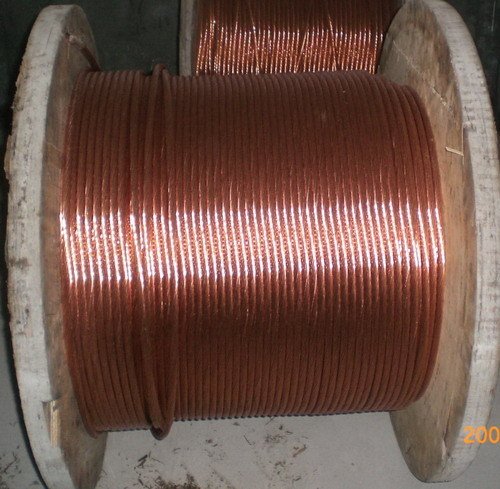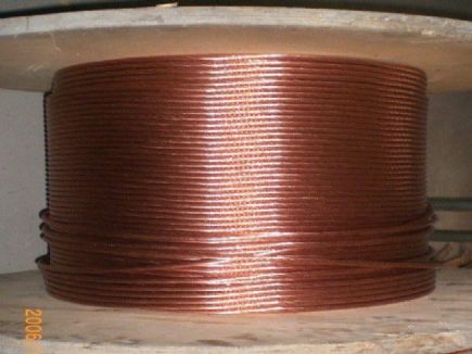 为芯,经镀铜加工而成的新型复合材料,广泛用于电力、通讯、石油化工等行业的接地导体。该产品既有钢的强度和韧性又有铜的导电性能,可焊性和耐腐蚀性,尤其是在比较大浪涌电流下,由于趋肤效应随着电流强度的增加而增大,因而铜包钢线的导电性能可与同截面积的