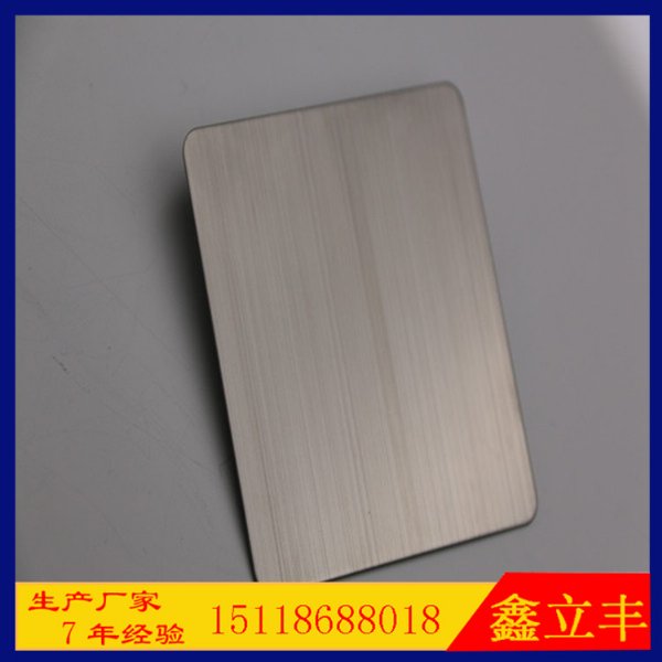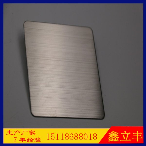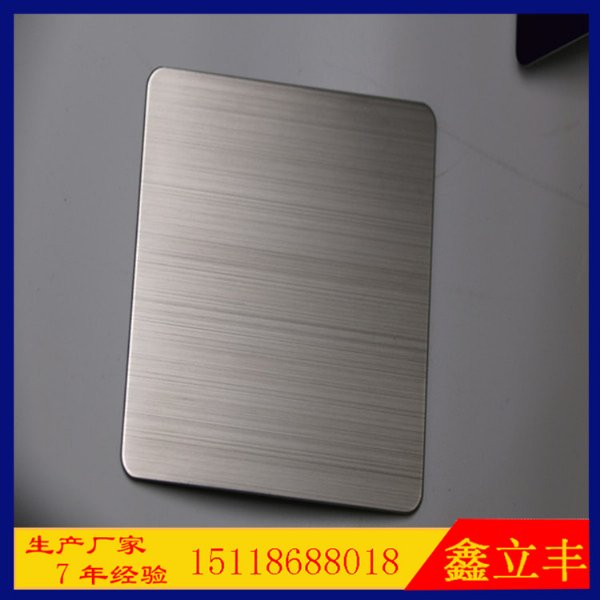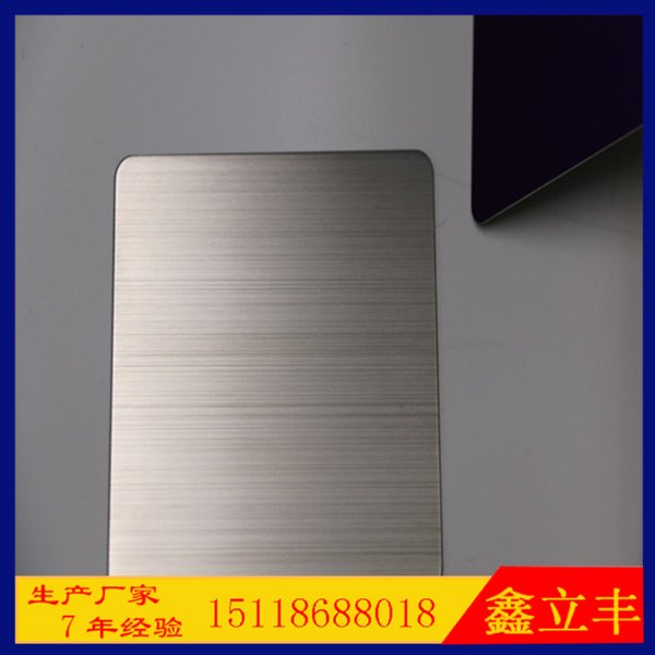 不锈钢镜面板的基础上结合拉丝制作成的产品,其观赏效果更佳,更耐看!可镀颜色:钛金、24K金、香槟金、玫瑰金、古铜、青铜、褐金、咖啡金、酒红、黑钛金、紫红、宝石蓝、粉红、紫罗兰、、茶色、黑玫瑰、七彩色等。另也可与不同的不锈钢表面处理方式相结合。当今国民经济迅速发展,已得到广泛运用:高档酒店、宾馆、KTV、其它娱乐场所建筑装璜,电梯装璜、工业装璜、高档家居装璜等领域。