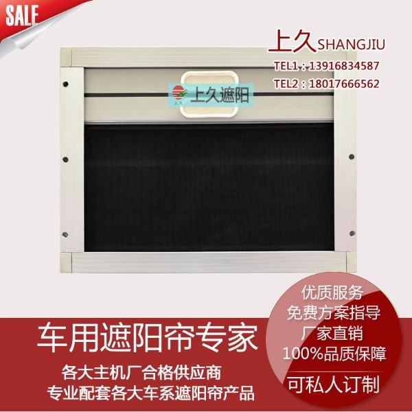 上久遮阳为每一位客户提供私人定制服务,根据需求的尺寸、面料定制而成,上百款面料可选,满足各种内饰及个性化需求,可按需印制LOGO