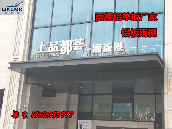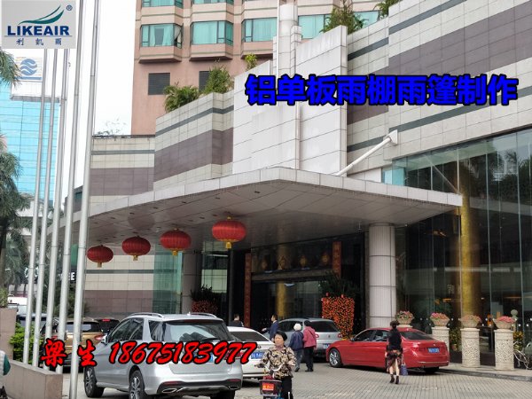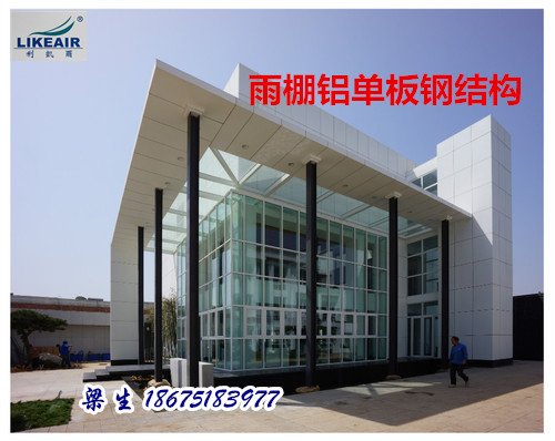 1、 铝板雨棚(篷)的优点:目前钢结构铝板雨棚是性价比*高,寿命*长的雨棚,适合飞机场,银行,大型超市,大型工程,学校,酒店,别墅都可以。