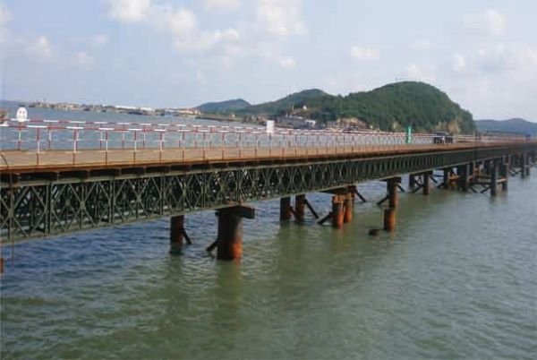 321钢桥是装配式公路钢桥,其*大特点是:构件轻巧,拆装方便,适应性强,用简单的工具和人力就能迅速建成。适用于汽车-10级、汽车-15级、汽车-20级、履带-50级、挂车-80级等5种载荷。桥面行车道净宽3.7m,可在9m到63M范围内组合成多种跨径简支粱桥,可构造连续粱桥。