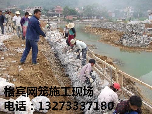 六角网组装成箱笼状,在工程现场向箱笼内填充一定规格的,满足一定要求的石料,以形成自透水的、柔性的、生态的防护结构。