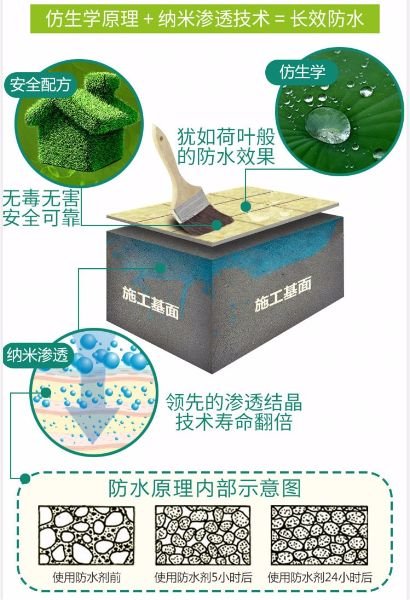 防水材料及制作工艺精制而成的一种新型水溶性防水剂,是各种裸露水泥