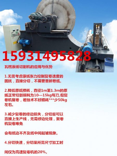 8.加工范围广,原纸宽度:3500mm, 直径:500mm-----1550mm 都可以直接加工。单边修裁10mm也可以完全整齐切断。