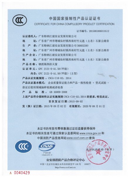 经国家消防局固定耐火系统和耐火构件质量监督检测中心,根据国家防火门标准《GB12675-2011》钢质防火窗耐火