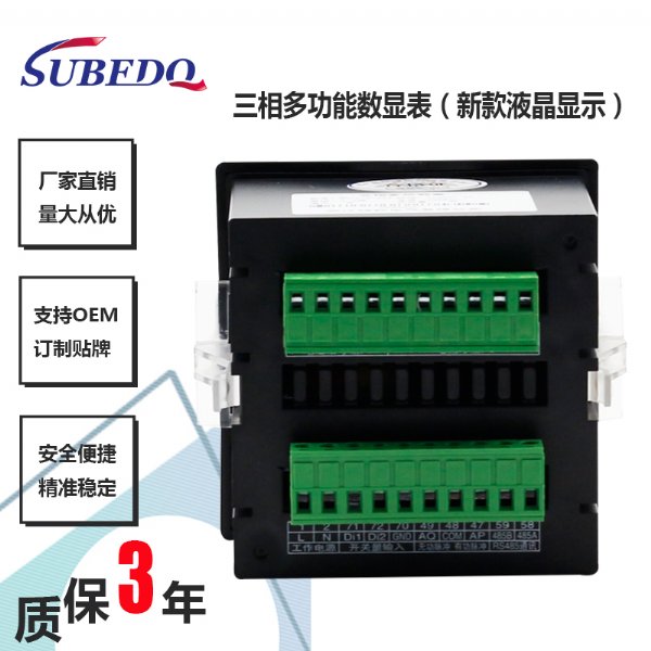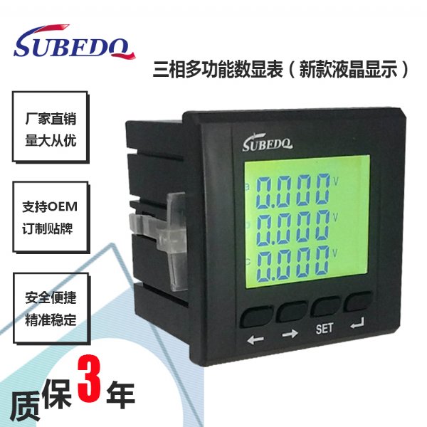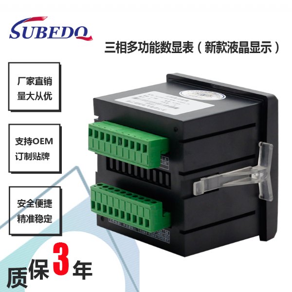 电流表,三相电压电流组合表,单相电压表,单相电流表,单相多功能数显表,三相液晶谐波表 ,三相功率因素表,三相频率表等....多功能数显表能够高精度测量三相电网全部电量参数,并带有通讯接口和电能脉冲输出、四路开关量输入、四路开关量输出和四路模拟量输出功能,可实现本地或远程的开关信号监测和控制功能。具有安装方便、接线简单、维护便利、工程量小、现场可编程设置输入参数等特点,并且能够完成与业界不同