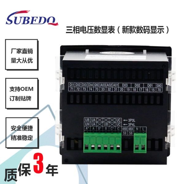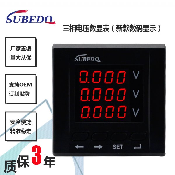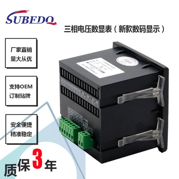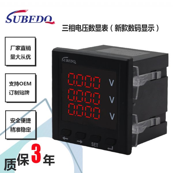 HY194U系列智能数显三相交流电压测量仪表,通过直接交流采样,微电脑数字化处理,真有效值算法测量电压,并由高亮LED