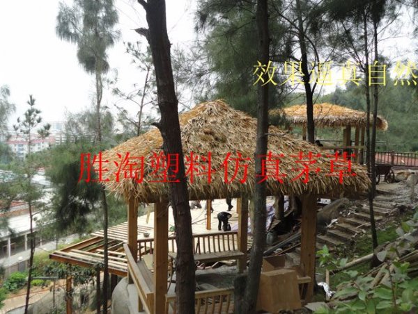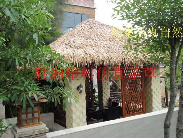 作为新型装饰材料人造茅草。大量的房产别墅、花园开始采用了胜淘仿真茅草作为他们的装饰材料,与其在茶台喝茶不如到茅草屋下享受茶的味道是如此的古典,仿佛自己活在古代其中。
