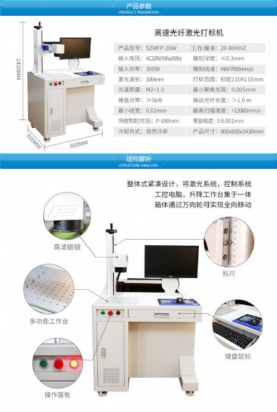 SZMFP-20W光纤激光打标机的设计,符合国际安全及操作标准。