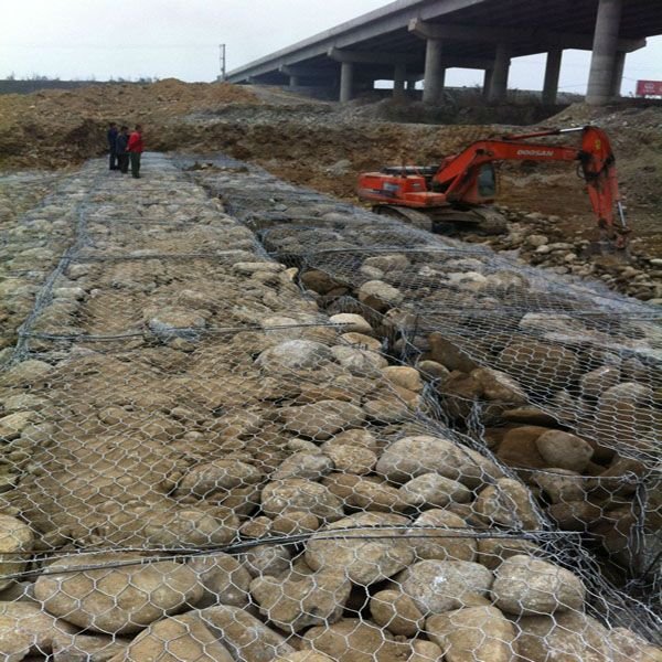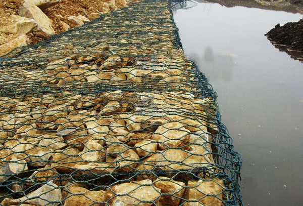(4)施工快:当基础开挖完成后石笼网建筑物即可一次建成。施工中还能避免在河道和海滩建筑围堰, 减少排水费用。在无水地区施工,经过铺网、填石和连接加固即可完成。在江河沿海地区进行水下施工时, 可事先装好石笼网, 然后吊装安放就位, 或者用船运至预定地点抛石就位截流工程可采用此法。