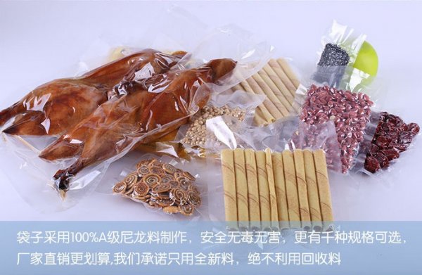②真空食品包装:大米、肉类制品、鱼干、水产品制品、腊味、烤鸭、烧鸡、烤猪、速冻食品、火腿、腌肉制品、香肠、熟肉制品、酱菜、豆沙、调料等的保香、保质、保味、保色。