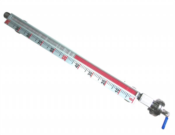 液位计是基于连通器和磁性耦合原理实现液位的实时测量。当被测容器中的液位升降时,浮筒内的磁性浮子也随之升降,浮子内的**磁钢通过磁性耦合驱动浮筒外部的磁性翻片翻转180°,翻片两面分别涂有不同颜色(通常为红色和白色),以指示液位的位置。一般地,当容器内液位上升时,翻片由白色转变为红色,当容器内液位下降时,翻片由红色转变为白色,指示器的红白交界处为容器内液位的实际高度,从而实现液位的准确测量。