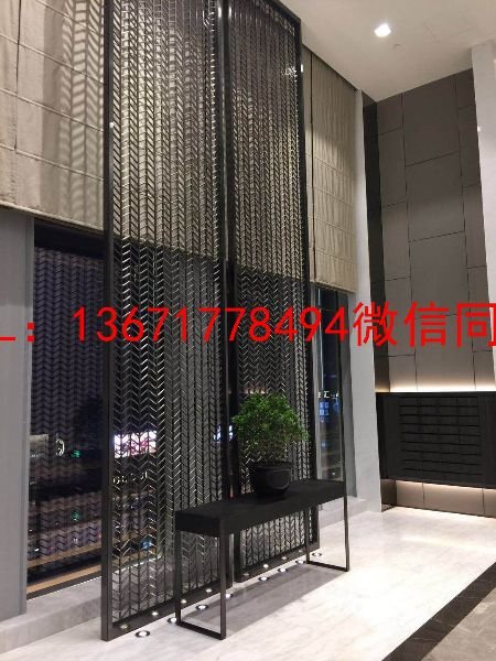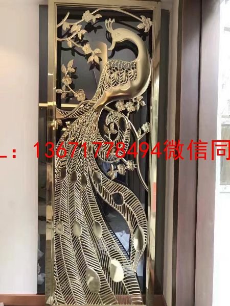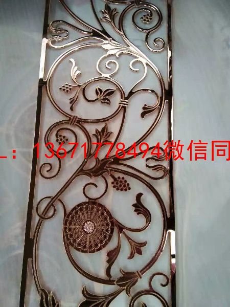二、激光焊接:不锈钢屏风采用激光与焊接组合的不仅是雕花屏风,还有围边的屏风。雕花屏风中间直接采用雕花,边框采用45度焊接即可。围边屏风则不同,围边屏风花纹正面和反面都采用激光雕刻,侧面采用不锈钢条围边,点焊或满焊,*后抛光。围边出来的屏风 的特点是线条非常直,而且厚度不受限制,可以做到几公分以上的厚度,同时可加工各种圆弧线线条屏风,因此加工出来的屏风更富有立体感和具有更好的视觉效果。