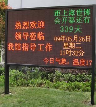 户外双色LED显示屏,可显示各种图形、动画、图表、文字、图片等信息。表面平整、显示均匀、发光亮度好、显示效果清晰稳定, 配有十几种循环变化方式。采用远距离串行通讯,可脱机运行,具有掉电保护功能。全部采用高亮度LED发光点二级管和进口元器件组装生产。具有高亮度、宽视觉、长寿命、重量轻、模块化结构、安装方便、易于维护等特点。