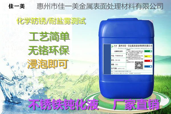 佳一美牌不锈铁环保钝化液作用:有效保护金属基体、延长不锈铁防锈或抗氧化的能力、至少可以提高6倍以上的防锈能力、提高耐盐雾测试时间、延长工件的使用寿命。