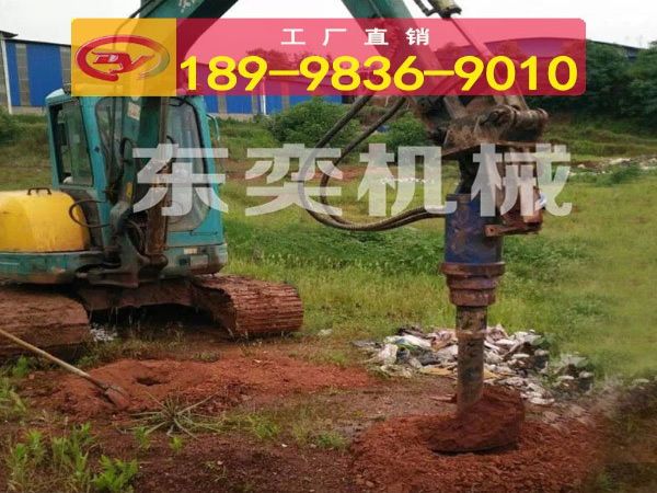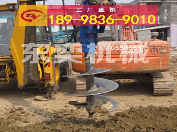 螺旋钻机采用挖掘机,装载机,铲车,钩机作为动力适用于种树挖坑、电线杆坑钻孔、钻孔直径径范围为:200mm-1200mm。适用于直接钻孔立杆的工程,也适用于在坑中下卡盘的钻孔工程。该机同时适用太阳能光伏发电中支架安装时的钻孔工程,将钻杆卸下后安装特定连接头可直接用于螺旋桩的安装。同时该机也被称作为打桩机,在农村房屋改造工程中,该机可以用于桩基的钻孔。该机充分实现了一机多用的功能,大大提高了实用性。螺旋钻机,主要由驱动头和钻头组件构成,驱动头与钻头组件固定连接,钻头组件包括钻杆、包绕着钻杆的螺旋叶片、以及设置在钻杆末端的钻头,所述的螺旋叶片的底端设置有钻齿。