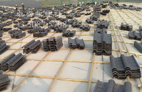钢木结构的屋顶安装高分子仿古琉璃瓦*是方便,不用做防水处理和混凝土现浇,可直接布瓦。做屋顶结构之前,根据所购仿古琉璃瓦的尺寸和安装孔们,来设计屋顶的框架结构。高分子材料的仿古琉璃瓦,其重量轻强度高,每平方米的重量18公斤,因此屋顶的结构尺寸可以相应减小,节省材料成本和基础费用。