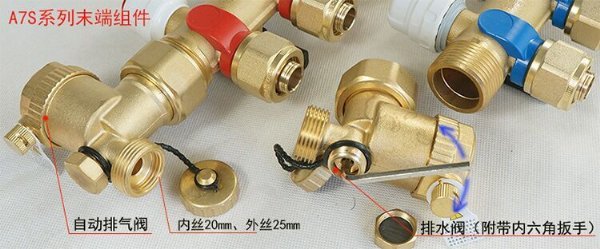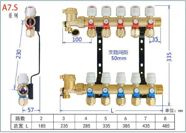 分集水器整体锻造,背插式支架,支路标识,手动流量调节型。 高密度锻造,主管一体成型 主管与支管整体无缝,彻底“绝漏” 轴向静密封防漏技术 分体式管