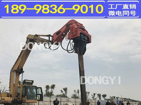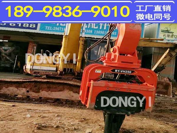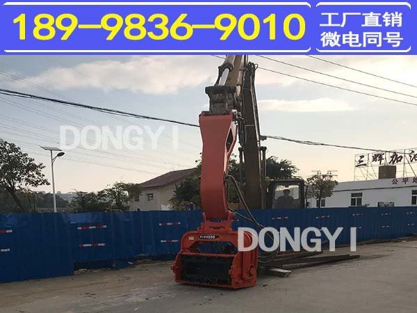 挖掘机液压振动打桩机是一种广泛应用各种基础施工工程的沉拔桩施工机械。是利用其周期的激振力使桩周边的土壤液化,以减少土壤对桩的摩擦阻力。利用桩体自重和桩锤重量,必要时可附加向下压力使桩体切入土层;反之,施加向上拉力,可把桩体拔出土层。具有噪音低,沉桩效果好,可在水下作业等优点;液压振动锤发展速度并广泛用于沉拔桩施工中。
