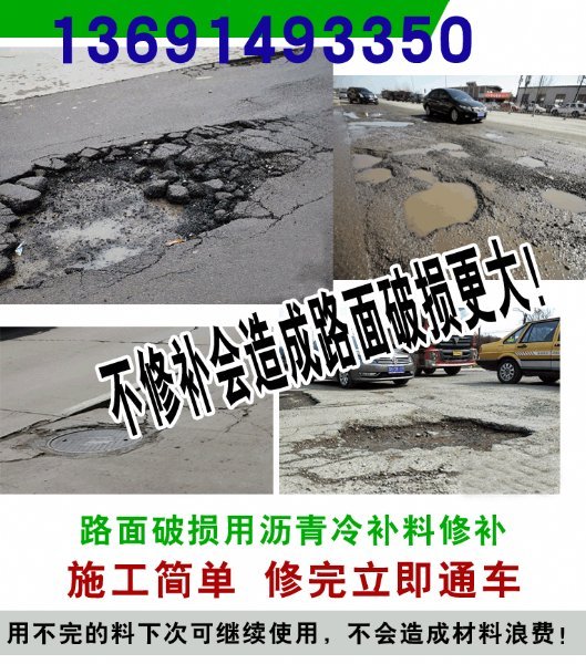 3、质量很好沥青冷补材料具有极强的抗老化和粘结性能。修补后的坑槽不易产生脱落,龟裂等不良现象,不需重复修补。