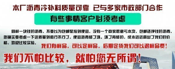 使用冷补材料施工。不受天气和坑槽大小、数量的限制、修补及时,可避免坑槽扩大,节省修补材料,且修补时无需加热和搅拌,可根据实际用量随时取用,剩余材料可在下次修补中继续使用,不会造成材料浪费,真正的100%利用。