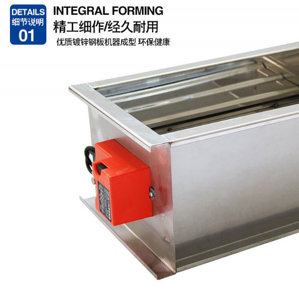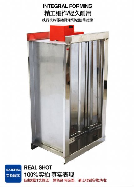 电动排烟防火阀,消防部件,一般安装在机械排烟系统的管道上,平时呈开启状态,火灾时当排烟管道内烟气温度达到280度时关闭,并在一定时间内满足漏烟量和耐火完整性要求,起隔烟阻火作用。主要材质:碳素钢,镀锌板,不锈钢。
