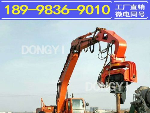 东奕挖掘机打桩机的特点及优势:全液压驱动、可以左右旋转180度作业;运输方便,可与挖掘机连为一体;可应用于各种工作现场、下雨天也可以在河边、水面作业;可打、拨钢桩、水泥桩、钢轨柱、铁板、H板、排水带等等。